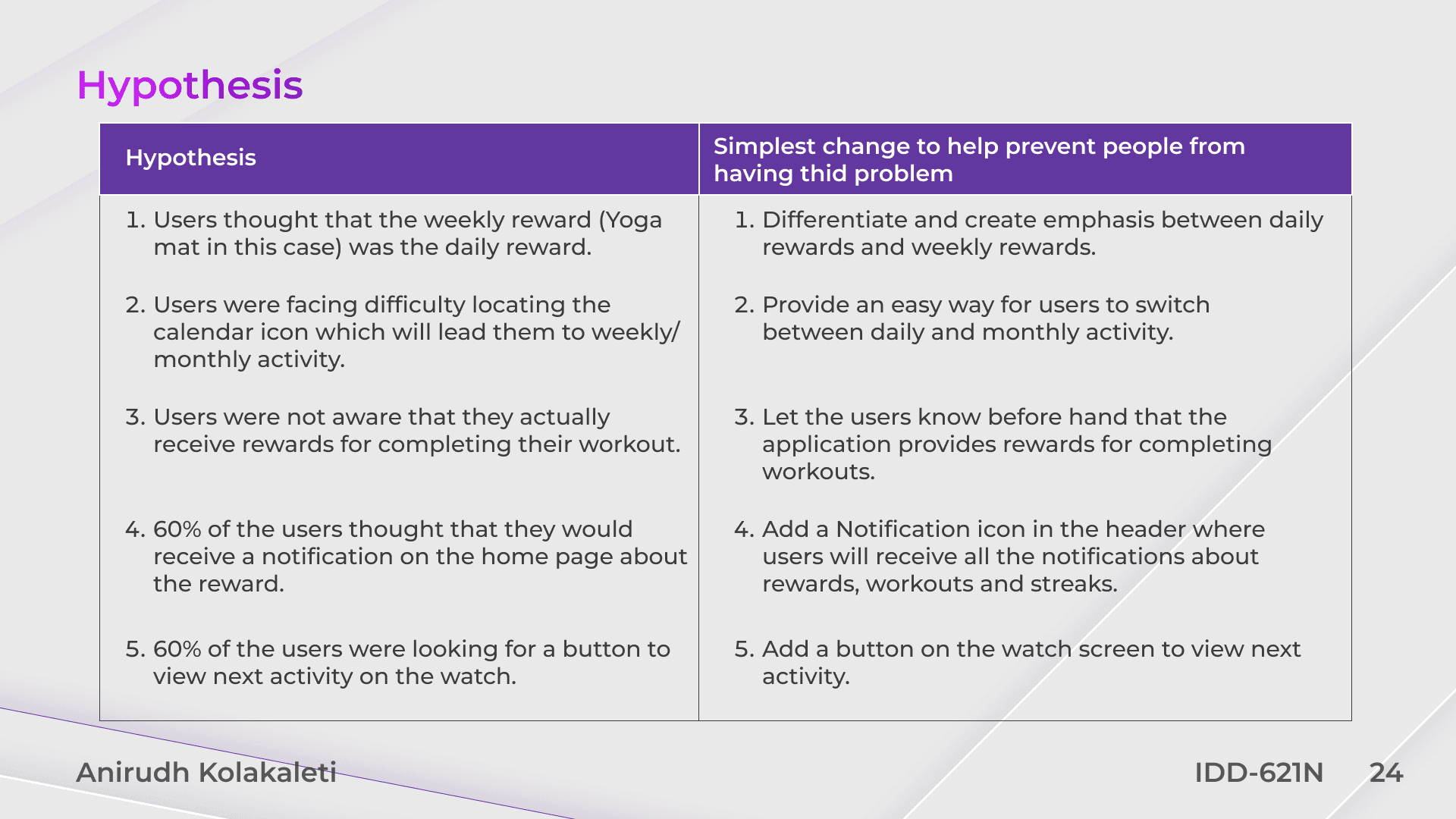 Iterative testing and validation were key to developing a seamless, engaging experience that effectively motivates users to exercise daily.