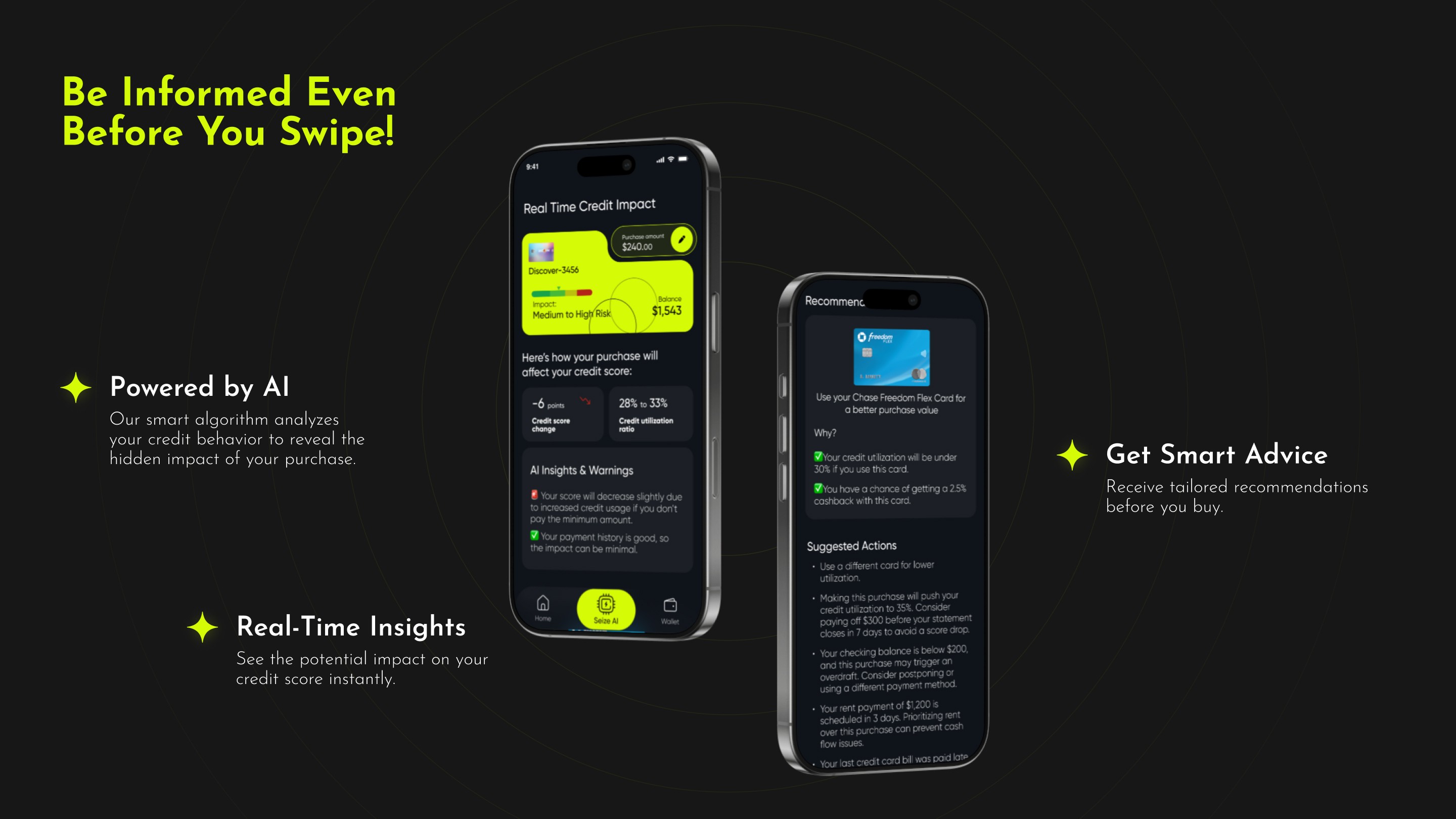 To address this challenge, Seize introduces an AI-based credit management tool with three core features: a real-time Impact Checker that forecasts score changes before a transaction, a Round-Up Savings Wallet that passively collects spare change to pay down debt, and Smart Nudges that offer tailored tips and warnings at the point of decision. Together, these tools shift users from reactive debt tracking to proactive financial control.